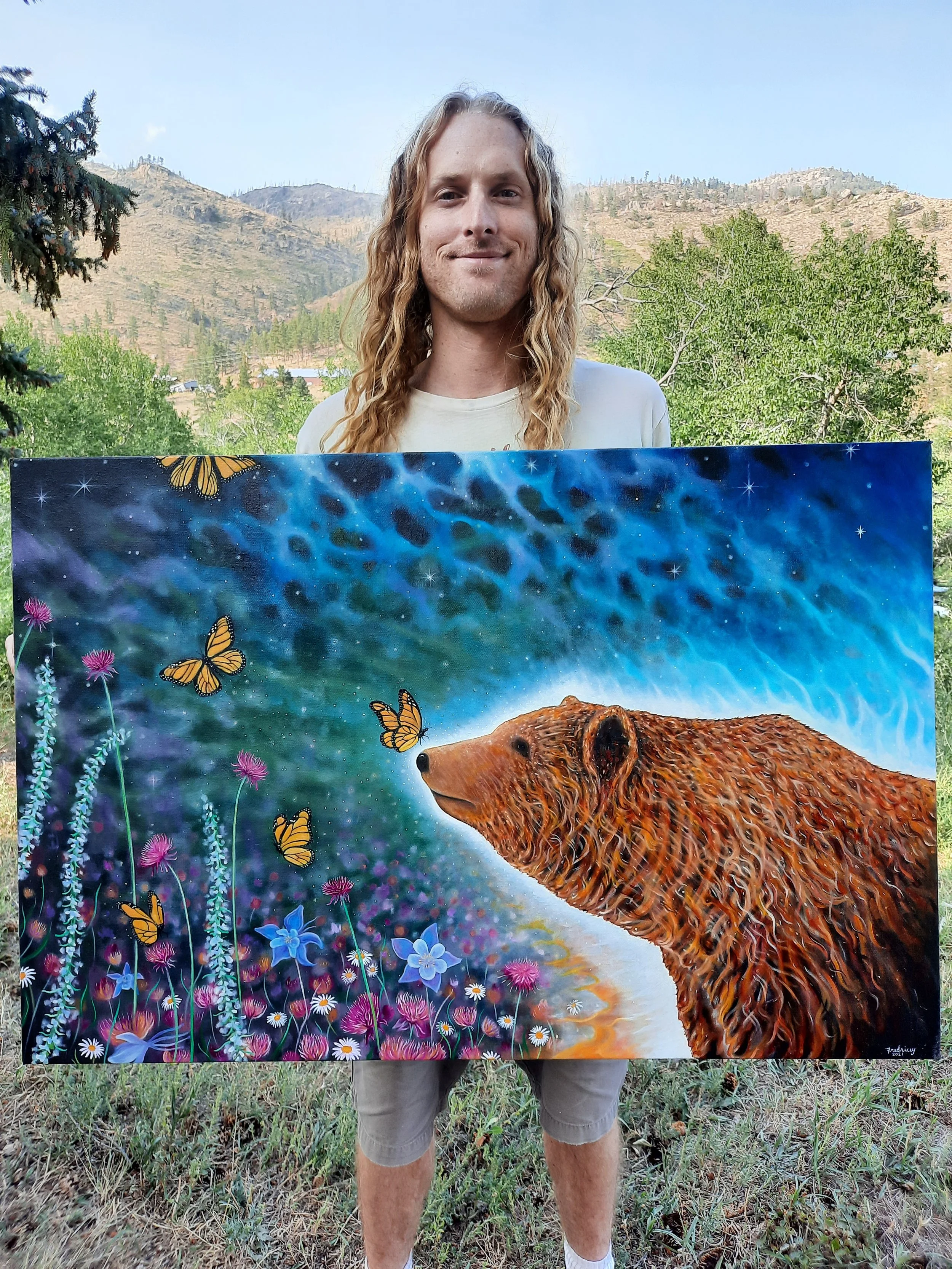 Creating art is what I love most and will continue to do until the sun grows cold (and beyond). For me, painting is a spiritual experience where I can stay completely engaged in the present moment. I find myself painting mystical, intuitive and psychedelic visions; art of a sacred or spiritual nature, imbued with symbols, realism, inter-dimensional beings, and nature inspired dream worlds.